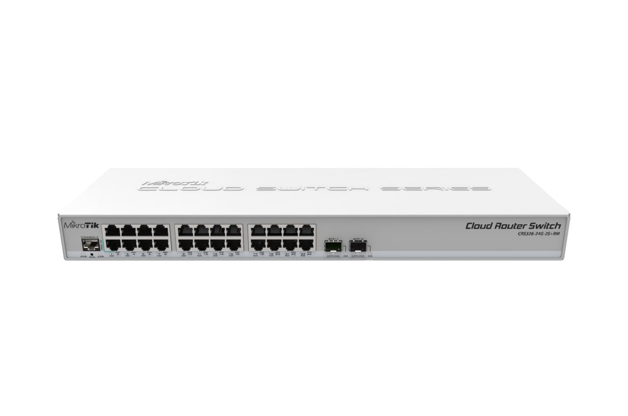 سوئیچ رکمونت میکروتیک CRS326-24G-2S+RM، یک سوئیچ حرفهای با ۲۴ پورت گیگابیت و ۲ پورت +SFP برای مدیریت پیشرفته شبکه است.